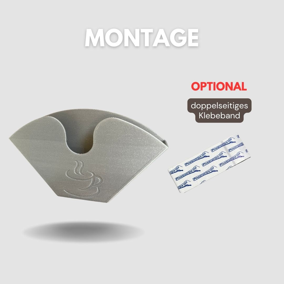 Der Halter ist lediglich für die Aufbewahrung von Kaffeefilter zugelassen. Niemals unter den befestigten Halter treten! Die Verantwortung für die Befestigung und Nutzung des Halters liegt ausschließlich beim Betreiber und sollte während der Nutzung überwacht werden. Es werden keinerlei Sach- und Personenschäden durch Missbrauch und deren Folgen übernommen.